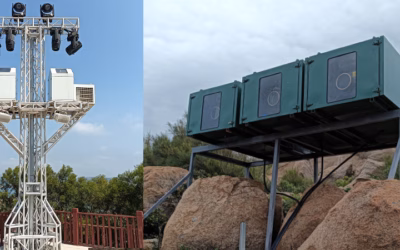 All-Weather Thermal Protection Projector Enclosure for Christie DWU2022-HS with Custom Ground-Mapping Pole Mount