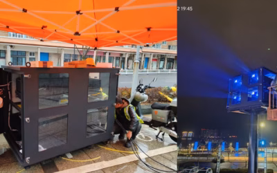 Introducing the Sky Blue Climate Box, a custom-color, all-weather thermal enclosure engineered specifically for the Epson CB-PU2220B projector and optimized for immersive ground-based 3D mapping. This system combines vibrant aesthetic integration with industrial-grade climate control, allowing you to project stunning interactive visuals onto floors, plazas, sand, and stages—rain or shine, day or night.