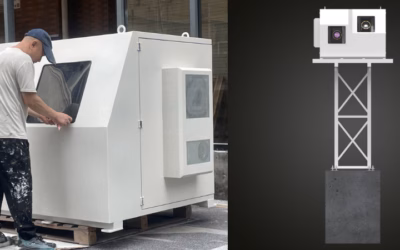 The Quad-Projector Fully Sealed Air Conditioned All-Weather Housing System engineered specifically for four Epson EB-PU2220B laser projectors (20,000 lumens each). This pole-mounted fortress delivers a combined 80,000 lumens of brilliant, climate-controlled projection power—optimized for breathtaking architectural 3D mapping on skyscrapers, monuments, stadiums, and expansive urban canvases.
