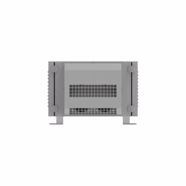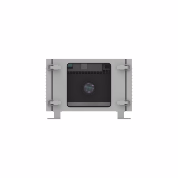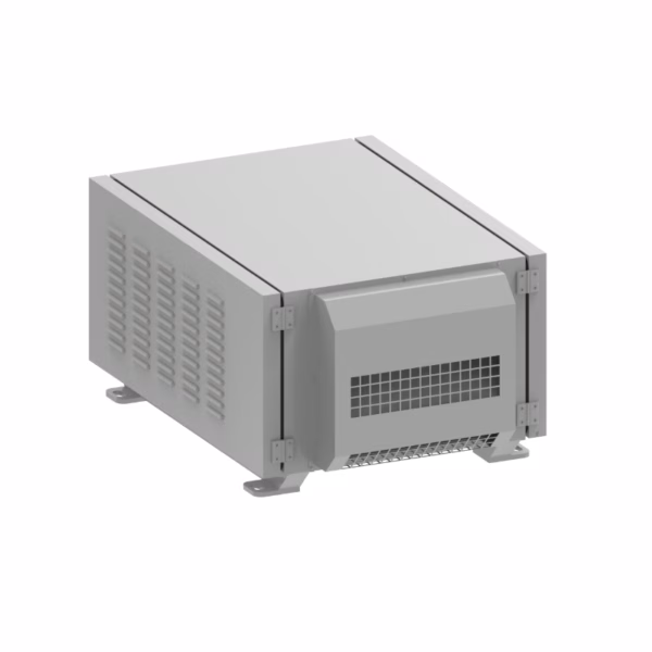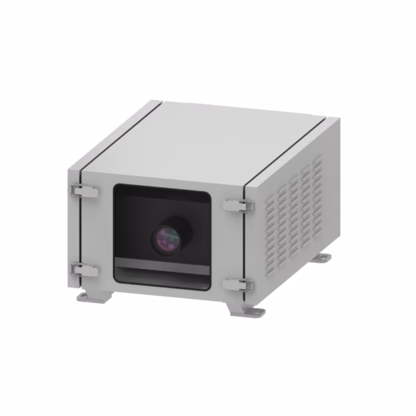 A robust air-cooled thermal management enclosure specifically engineered for the Panasonic REQ12K laser projector, providing reliable climate control and environmental protection for permanent outdoor installations.